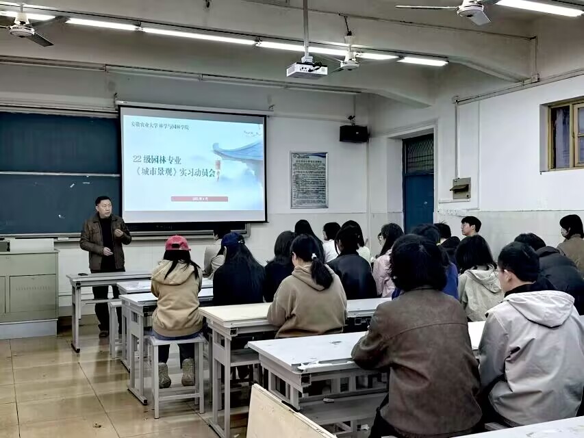本网讯 4月2日上午,22园林专业在化学楼规划教室召开《城市景观》实习动员,学院副院长陆小彪到会指导,实习指导老师范卉、满子豪等参会,动员会由辅导员夏利明主持。