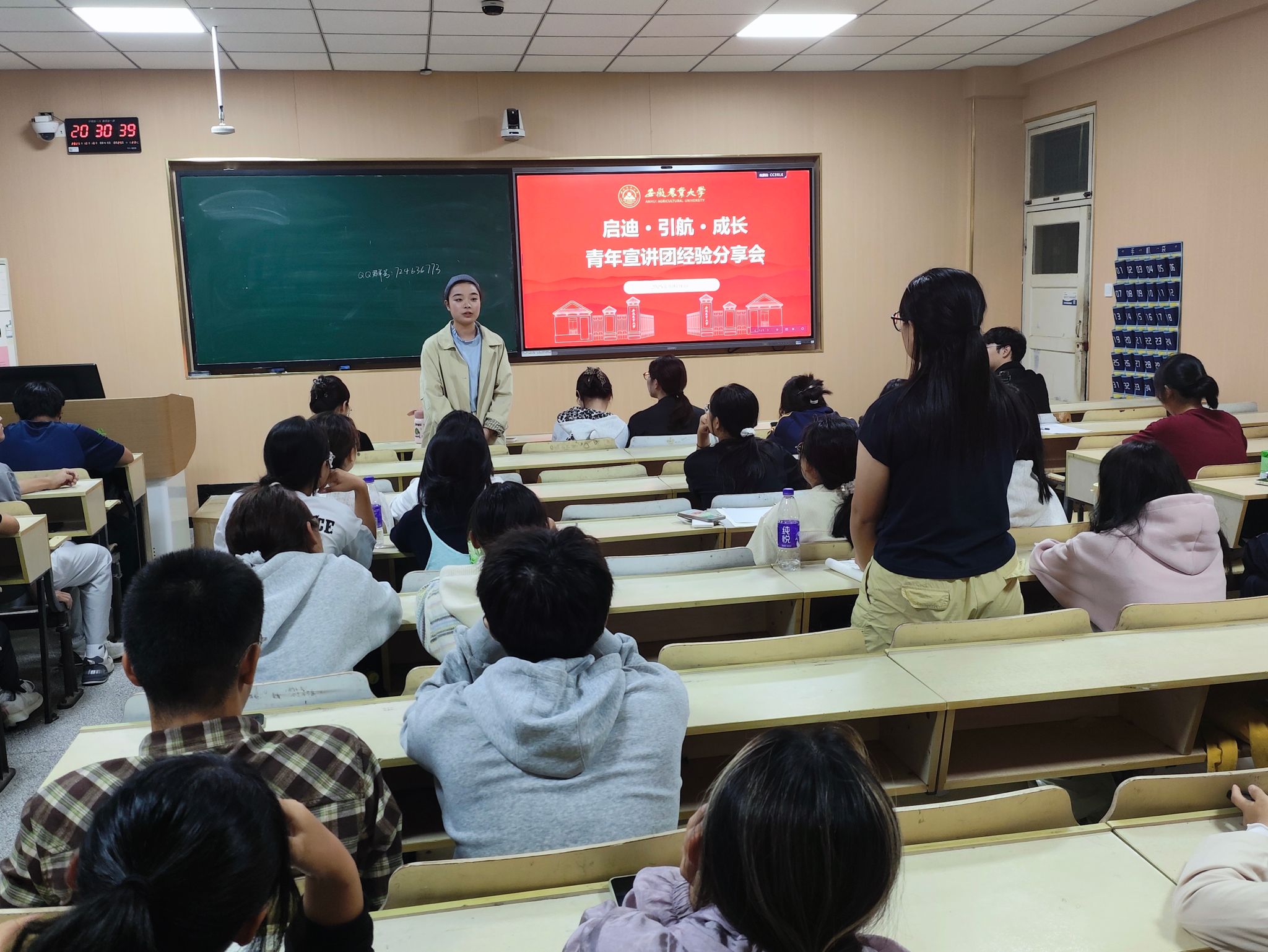 本网讯 为激发2025级新生学习热情,引导其科学规划大学生涯、明晰未来发展方向,10月16日晚,2025级园林专业在勤学楼512教室举办“启迪·引航·成长”——青年宣讲团经验分享会,活动特邀4位已成功推免的2022级园林专业优秀学生开展经验分享,班主任满子豪老师、2025级园林专业全体学生参加活动。活动由辅导员陈枫老师主持。