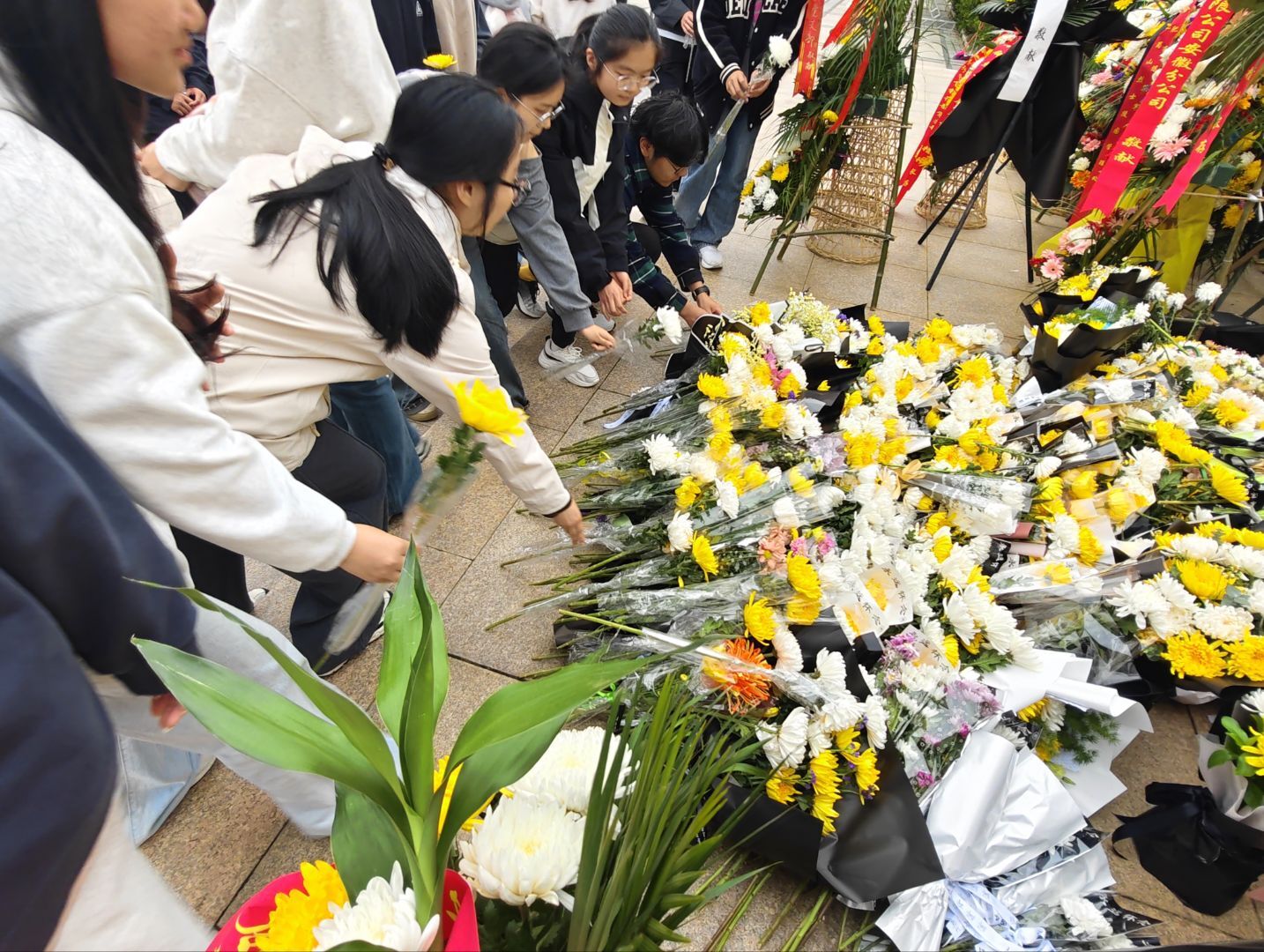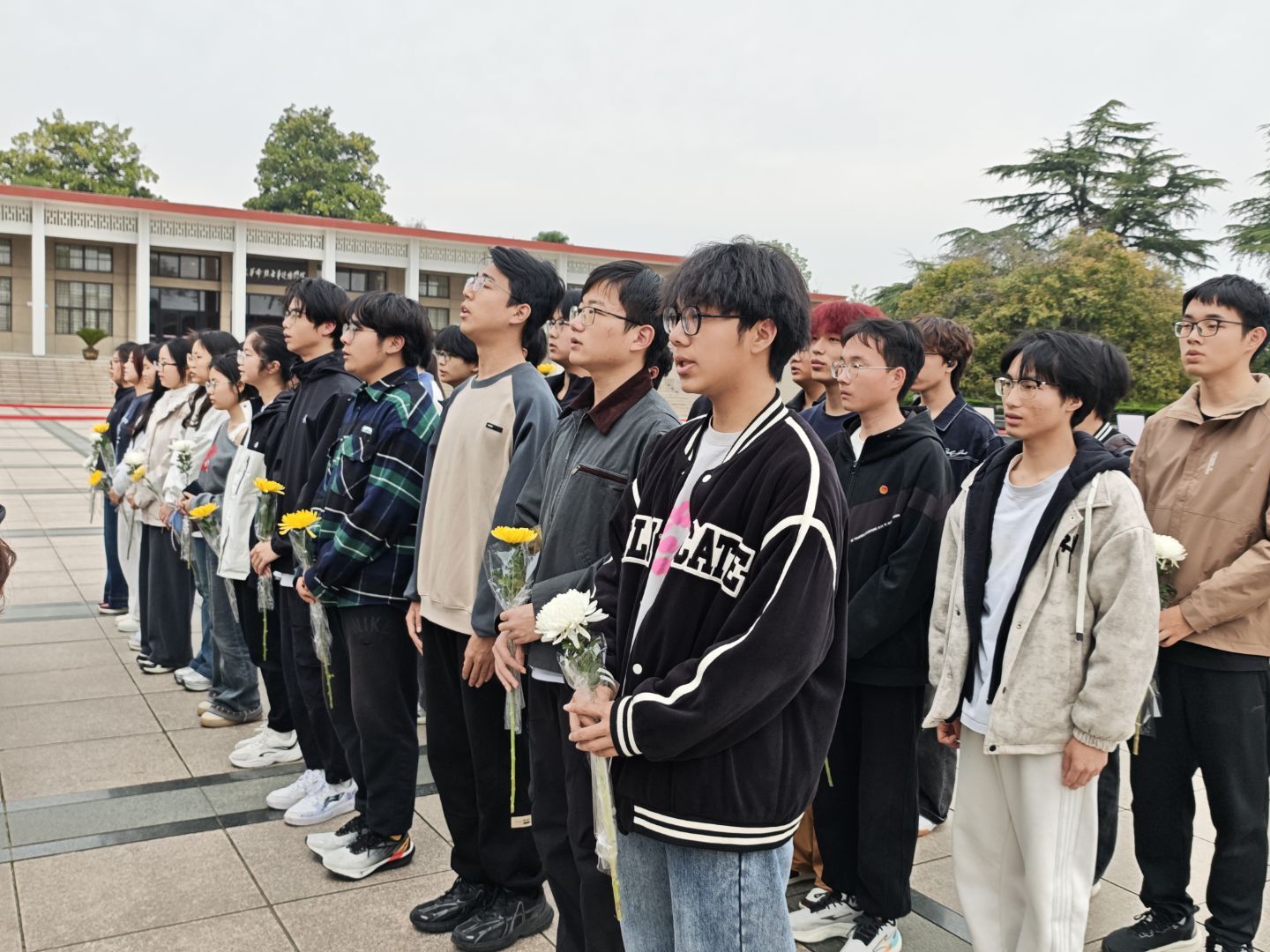 同学们整齐列队于烈士纪念碑前,向为民族独立、人民解放和国家建设事业英勇献身的革命先烈默哀三分钟,并敬献鲜花,表达深切追思与崇高敬意。