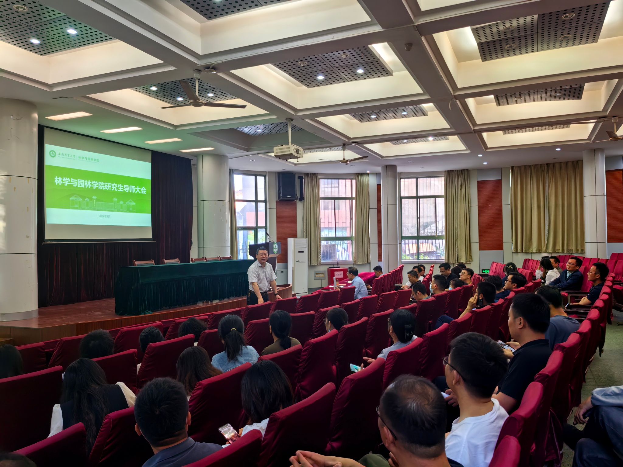 本网讯 5月15日下午,林学与园林学院召开研究生导师大会,部署落实研究生论文送审、毕业答辩、就业等相关工作,学院院长徐斌主持会议,党政领导班子成员、全体研究生导师参会。