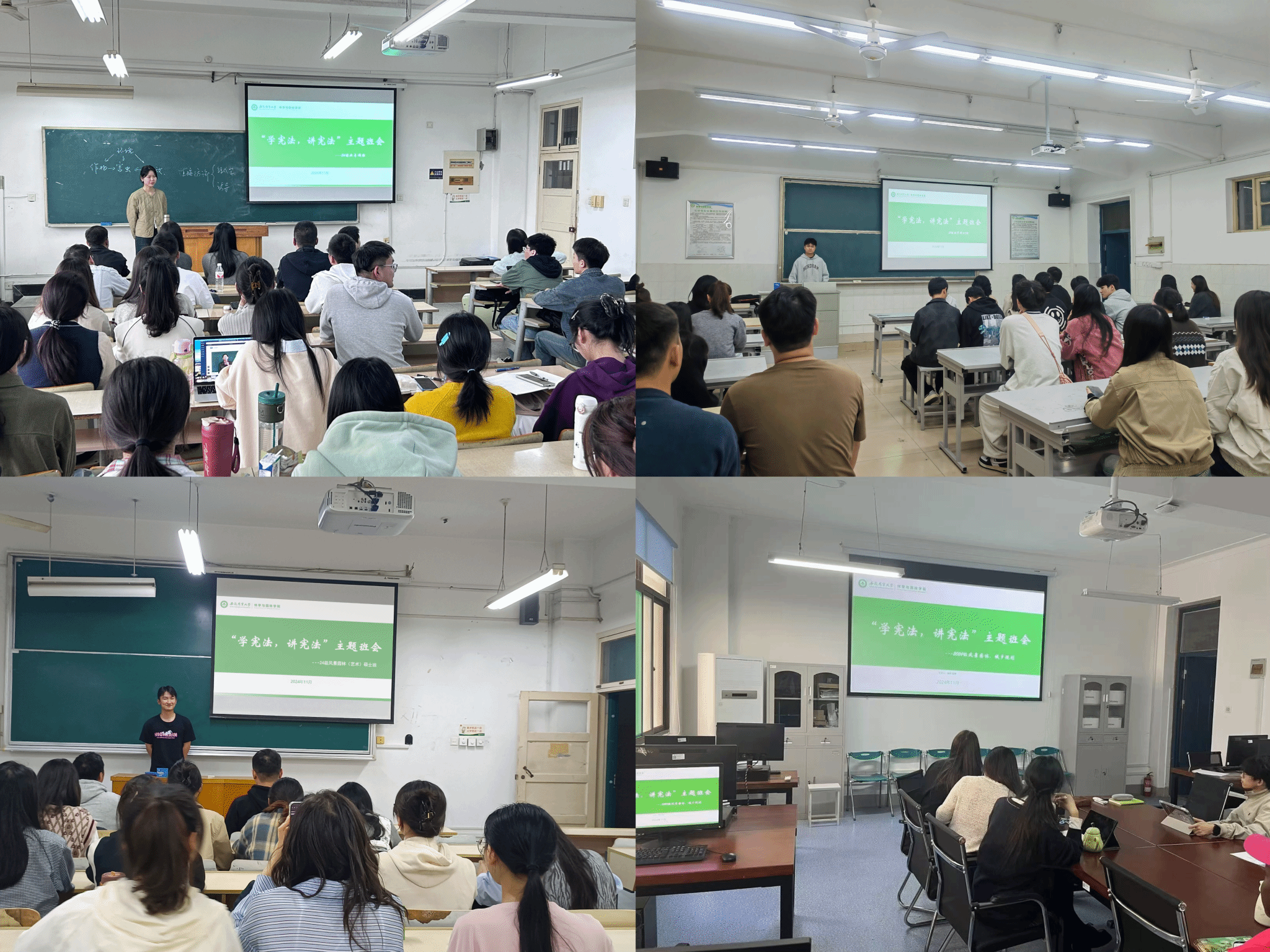 为树立研究生尊崇宪法的意识,提高其法治意识和道德素养。11月14日以来,林学与园林学院研究生各班级先后组织召开了“学宪法,讲宪法”主题班会。参与人数达500余人。
