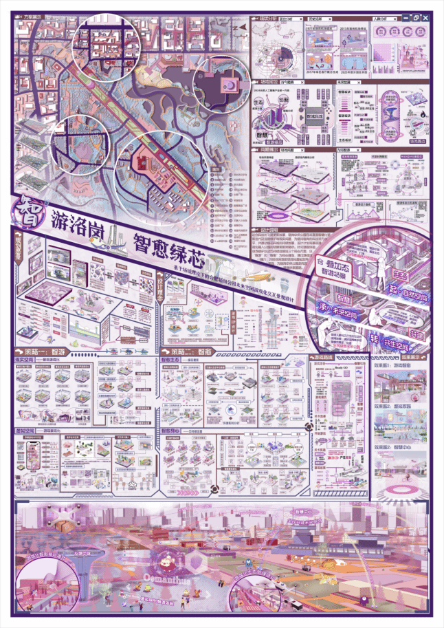 作为国内风景园林领域最具权以及影响力的专业竞赛,在备赛过程中,学生互相鼓励、目标一致。团队成员精心选址,优化设计,充分考虑人文、自然、共享、生态、创新发展,以智慧化、未来化、生态友好、全民共享共建为理念。针对游客体验、场地维护以及可持续运营这三个核心方面,以“智游”“智愈”为核心,通过游戏这一媒介,巧妙地将现实空间与虚拟世界相连,为骆岗中央公园走向世界提供新思路。本次作品在评选中取得佳绩,充分反映了团队规划设计作品不断提升,并在中国风景园林年会中获得认可。
