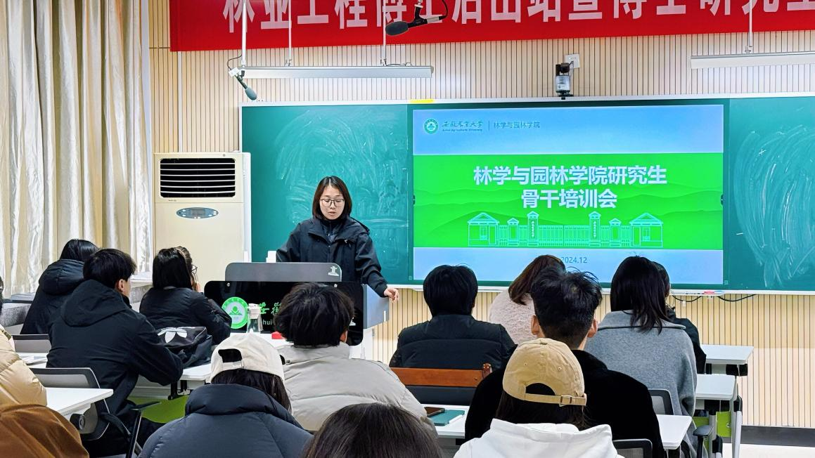 本网讯 12月6日上午,林学与园林学院在林学楼106教室举办研究生骨干培训会。学院负责研究生日常管理老师张焕主持培训,学院各班级委员、研究生各部门主要负责人参会。