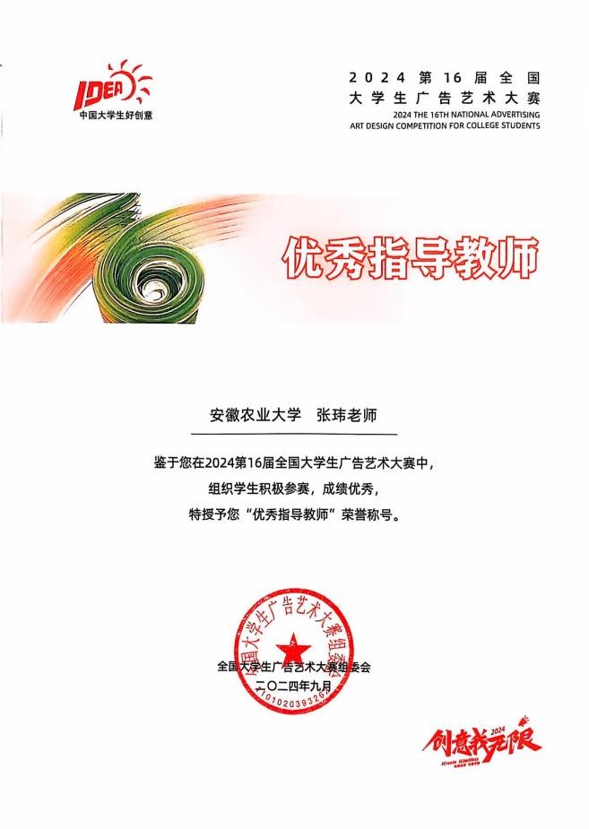 大广赛是全国规模大、覆盖高等院校广、参与师生人数多、作品水准高的全国性高校文科竞赛,整合社会资源、服务教学改革,以企业真实营销项目作为命题,与教学相结合,真题真做,旨在提升师生实践能力,强化创新创业协同育人的理念。安徽农业大学一直以来高度重视以赛促学、以赛促教、以赛促创、以赛立德,此次大广赛各位师生所获奖项,是我校始终以服务地方经济,培养复合应用型人才的定位的重要体现。(图文/张玮 编辑/胡先业 预审/夏利明 审核/江正君)