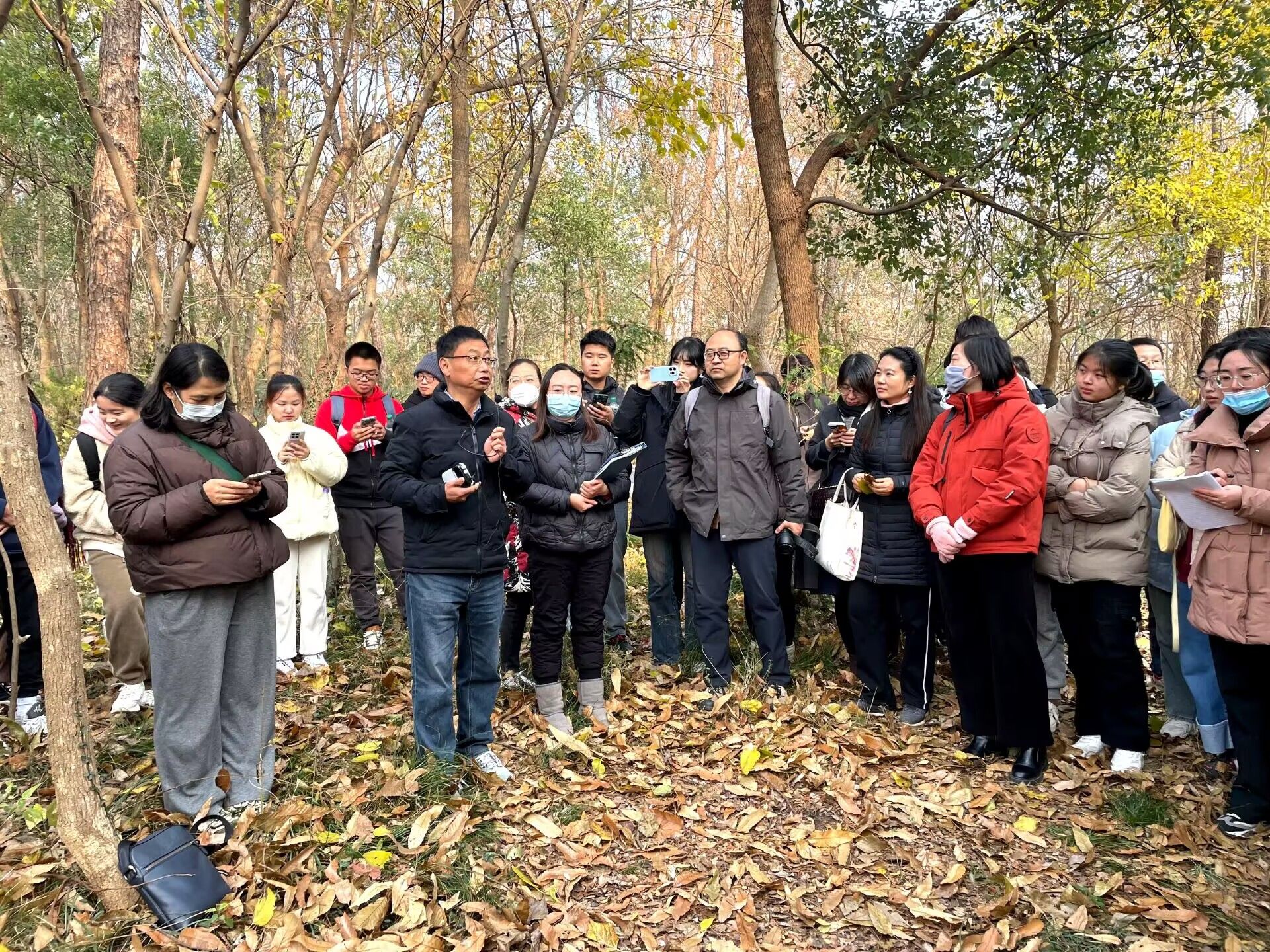 13日下午,学院教师、部分林学专业本科生80余人,前往合肥市大蜀山森林公园进行了外业现场教学,特邀资源与环境学院朱林教授现场授课。