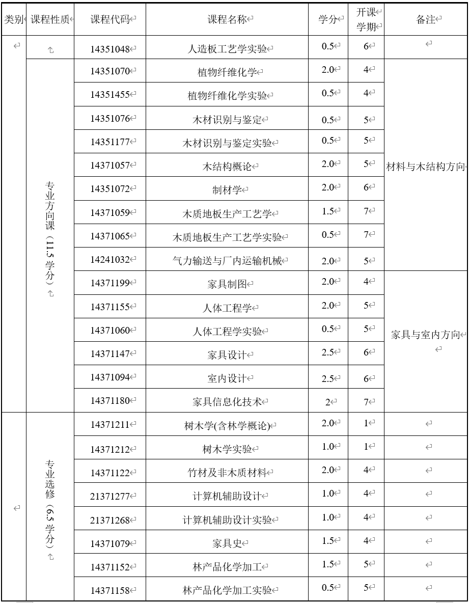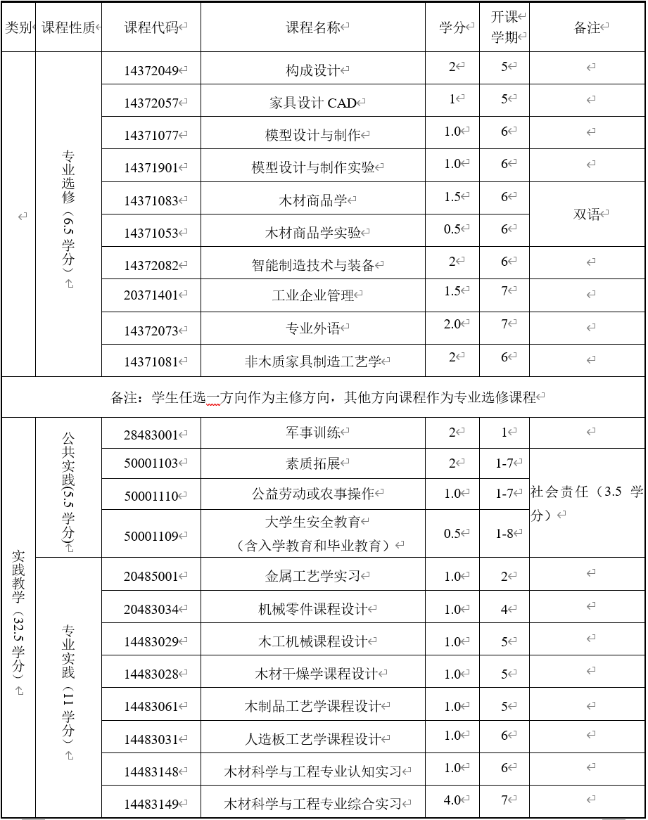 要求2:应具备系统地掌握本专业的理论基础,包括:木材学、木材干燥学、机械设计基础、木材改性、胶粘剂与涂料、电工与电子技术、木制品制造工艺学、人造板工艺学、木工机械、智能制造技术与装备、计算机辅助设计及企业管理等方面的知识。