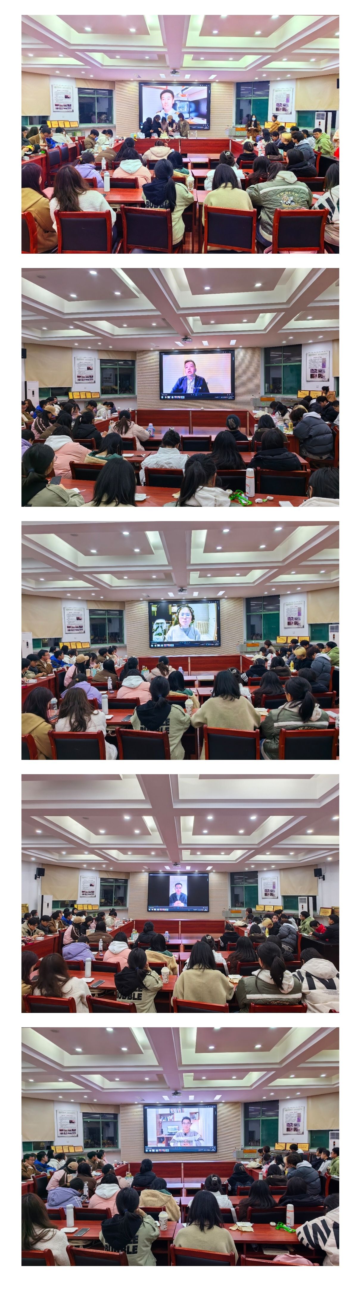 会上特别播放了经验交流视频,来自我校10届动物医学专业毕业生刘瑜(现任某航空公司飞行机长)、14届动物医学专业毕业生吴峰(现在江苏大学从教)、姜倩倩(现在荷兰工作),18届动物科学专业毕业生王畅(现为西藏自治区公务员),13届园林专业毕业生陈晋(现就职于华东建筑设计研究院)分别分享了大学学习生活经历以及毕业后求学工作经历,勉励学弟学妹们珍惜光阴、逐梦前行。