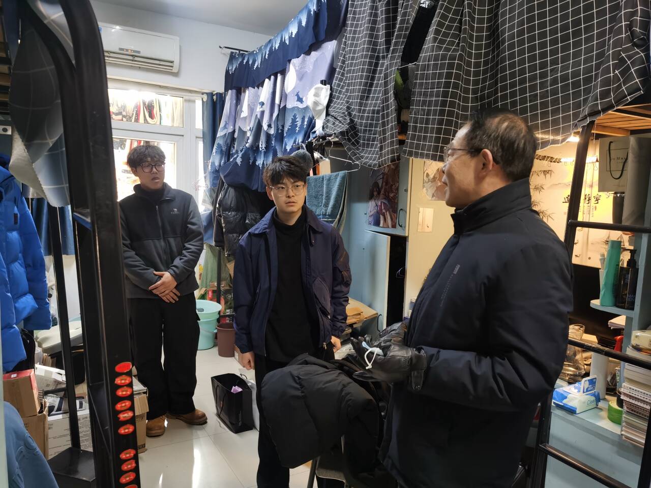 学生返校后走访学生宿舍,有利于学院领导和辅导员深入了解学生在校生活状况,有利于构建更加和谐融洽的师生关系,拉近师生间的距离,确保了学期初学生宿舍的安全稳定。(文/编辑/殷晓雨 图/李港、王凯旋 预审/夏利明 审核/江正君)