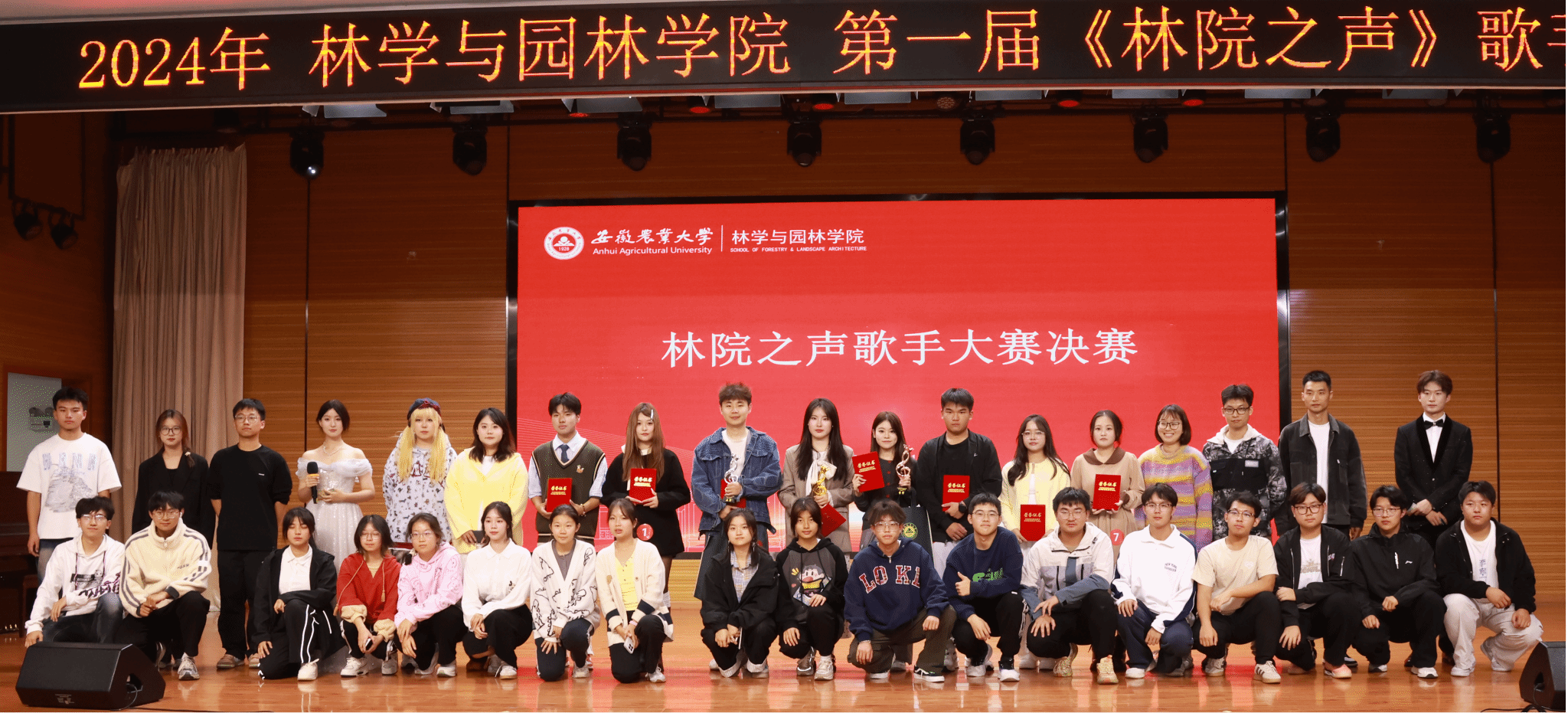 经过三回合的紧张对决,24级林学硕士一班的张蓓以卓越表现获得冠军,22级视觉传达的刘金辉和24级林学一班的邢月涵分别荣获亚军和季军。此外,23级林学硕士四班的王子言凭借线上和现场观众的投票支持,荣获“人气之星歌手”称号。
