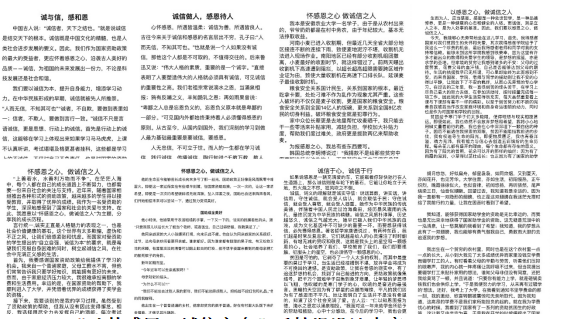本次诚信教育主题征文比赛的举办,引导了同学们自觉将诚信感恩作为自己的品行修炼内容,使同学们牢固树立了诚信感恩思想,进一步增强社会责任感。同时,借助文字的力量弘扬诚信美德,引导学生成为诚实守信、懂得感恩、勇于担当的时代新青年。