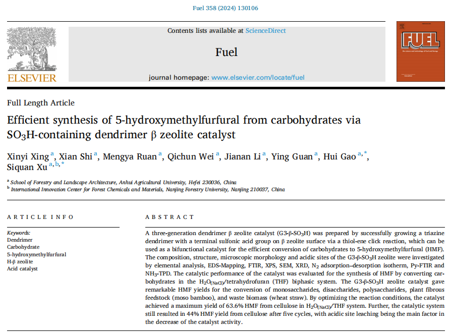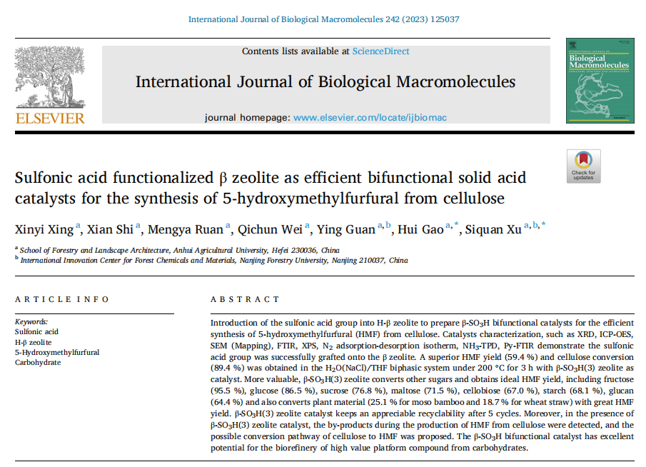 本网讯 近期,林学与园林学院高慧教授团队在生物质资源高值化利用领域取得进展,相关研究发表了两篇高水平研究论文,分别发表于《燃料》(《Fuel》,中科院一区TOP,IF=7.4)、《国际生物大分子》(《International Journal of Biological Macromolecules》,中科院一区TOP,IF=8.2)。