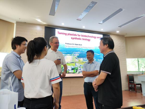 报告会后,许多教师仍意犹未尽,纷纷围绕在Ralph Bock教授身边,继续深入交流。他们或请教科研中遇到的问题,或分享自己的研究心得,现场气氛热烈融洽。